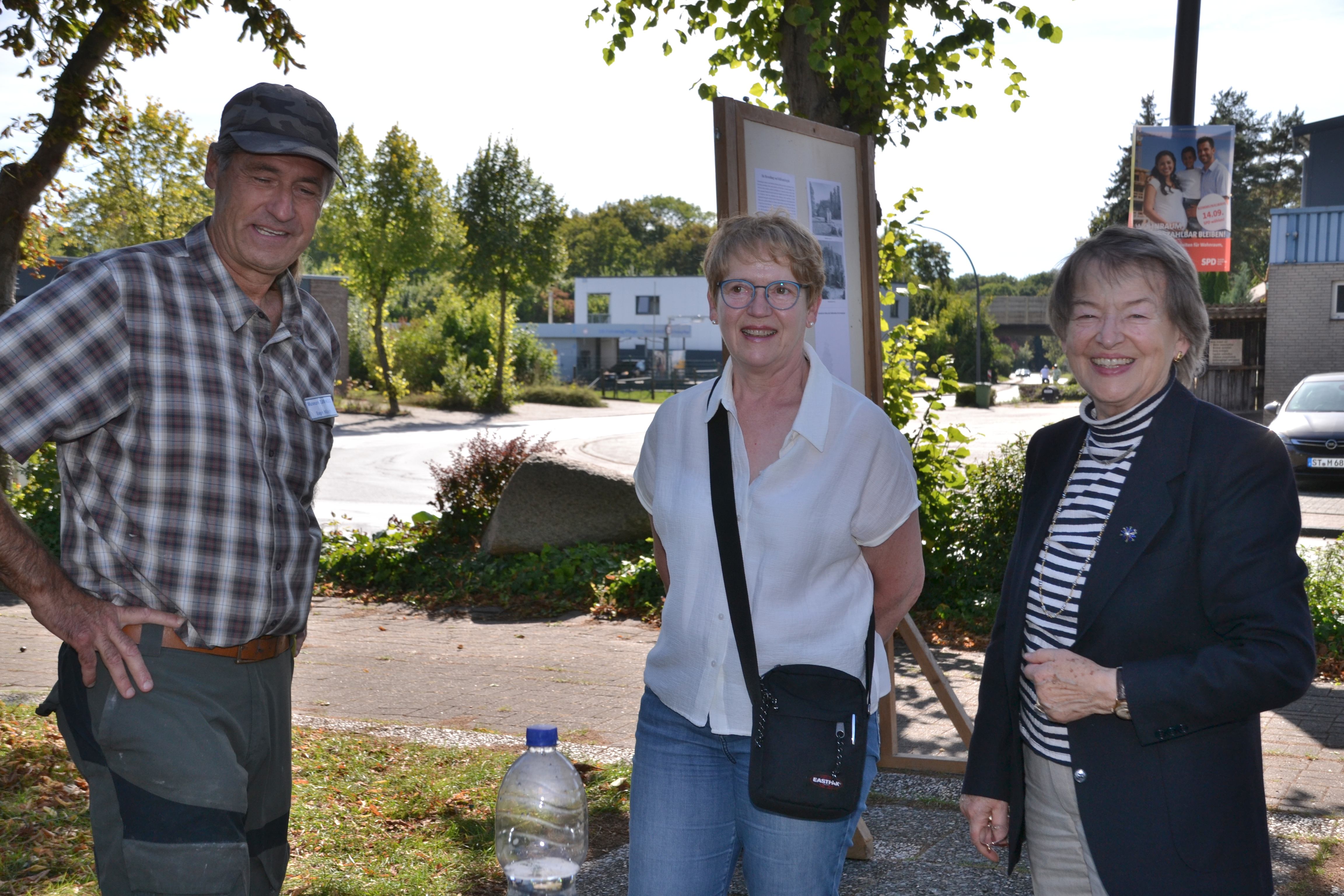 Als besondere Überraschung besuchte Heinz Hinse mit seiner Tochter das Museum. Er wollte sich einmal anschauen, wieviel Material über den Altenberger Stein zusammengetragen wurde. Sein Vater hatte in Altenberge einen Hof, auf den im Jahr 1954 die Würdenträger des Domkapitels zu Besuch kamen um einen Acker zu pachten. Ziel war es, Steine für die Restaurierung der Kriegsschäden des Paulus-Doms zu gewinnen. Denn Baumaterial war in dieser Zeit Heiß begehrt. Das Domkapitel wünschte sich verständlicherweise eine Restaurierung mit dem gleichen harten Kalkstein, der um 1200 im ursprünglichen Dom verwendet wurde und der damals schon in diesem Gebiet abgebaut wurde. Jetzt gibt es keinen Abbau mehr in Altenberge, wenngleich die Schichten noch vorhanden wären. Es sind die Kosten, die den Abbau unrentabel machen, so Herr Hinse.